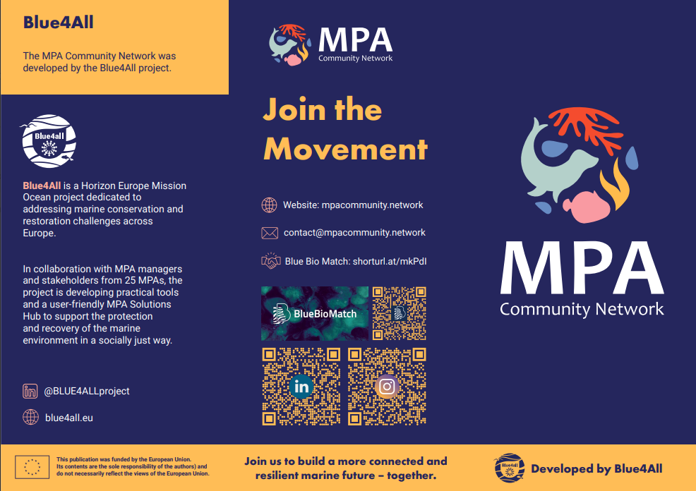 Learn more about the MPA Community Network in this brochure, including its connection to Blue4All and its role as an umbrella initiative for MPA-related projects. It also provides an overview of its key features, including the website, the networking platform, and the MPA Solutions Hub.